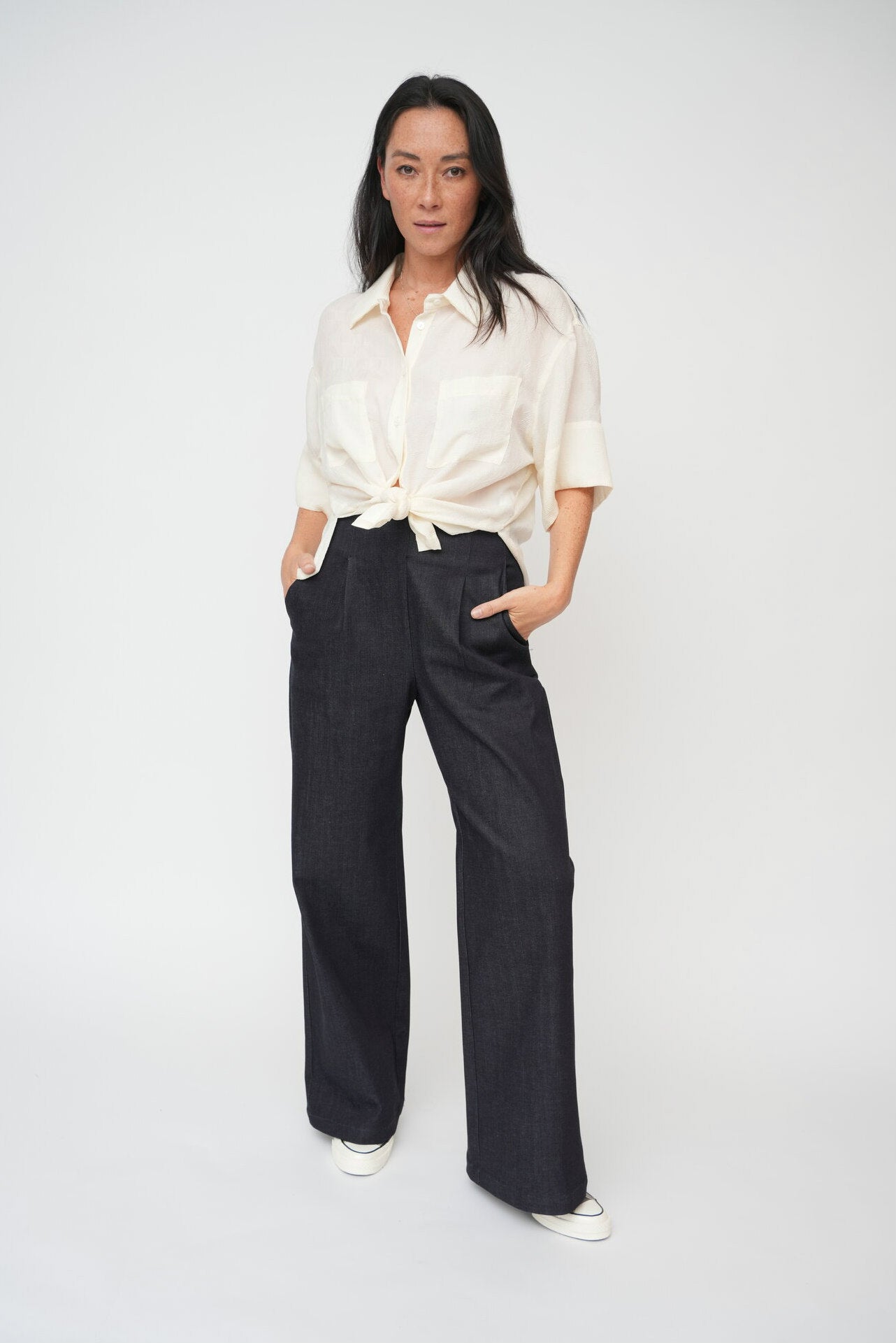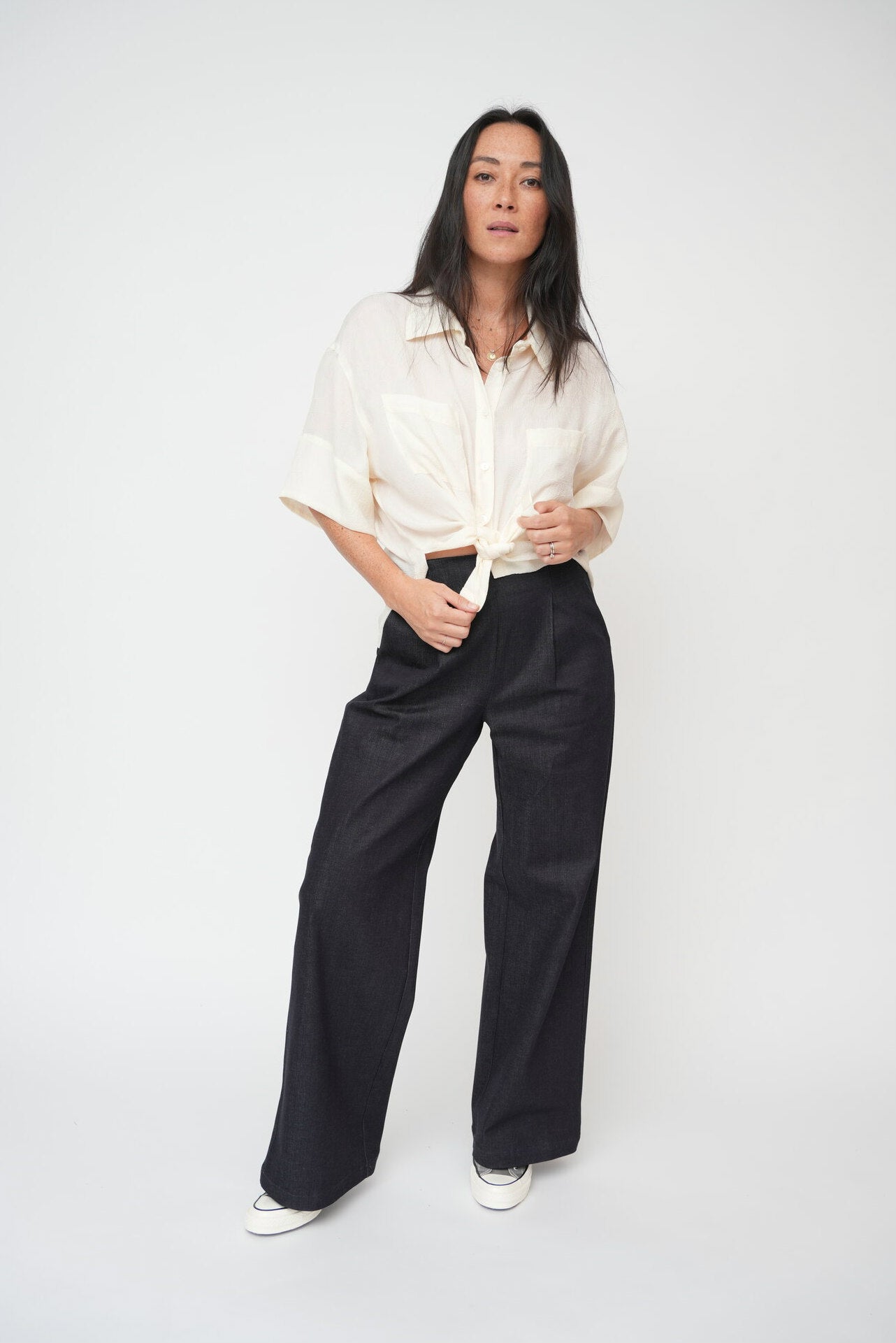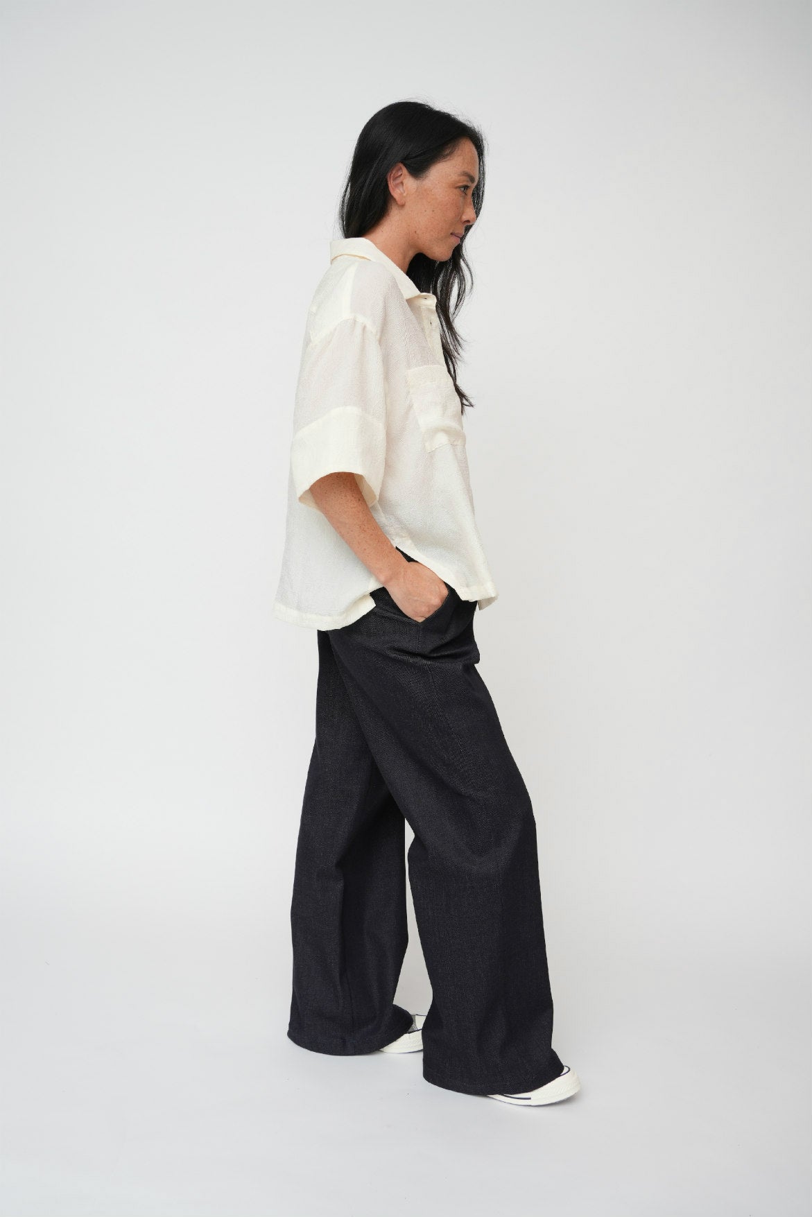 - Side splits perfect for half-tuck front styling