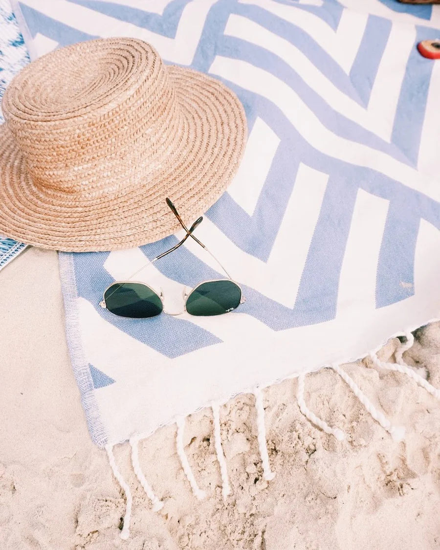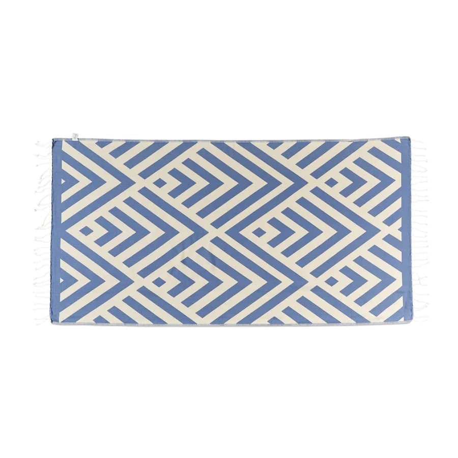 Zig Zag Blue is part of The Jackie collection. A trendy criss cross pattern results in a towel that is suited as a decorative throw at home as well as outside. Not just simply for the beach, its thick weave allows The Jackie to become a staple of outdoor activities such as picnics